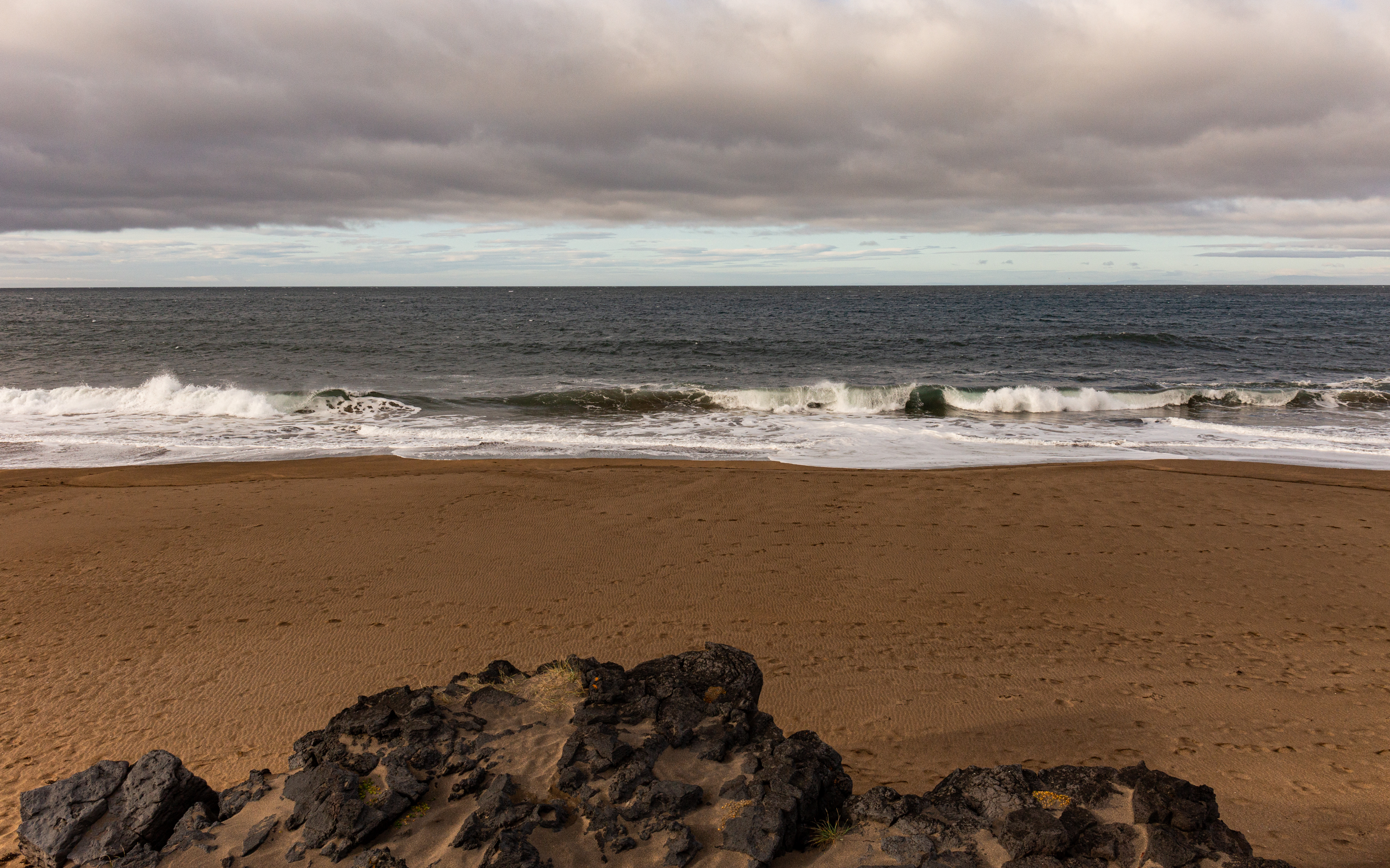 • Skarðsvík Beach. We are now in the Snæfellsnes Natural Park. This is a tiny secluded beach. What is special about it? Well, it actually is a golden sand beach, unlike the majority of beaches in Iceland. There is a nice contrast between the black charred rocks, the golden sand, and the green water. The rod to this beach is very narrow but it is quite a nice ride.
