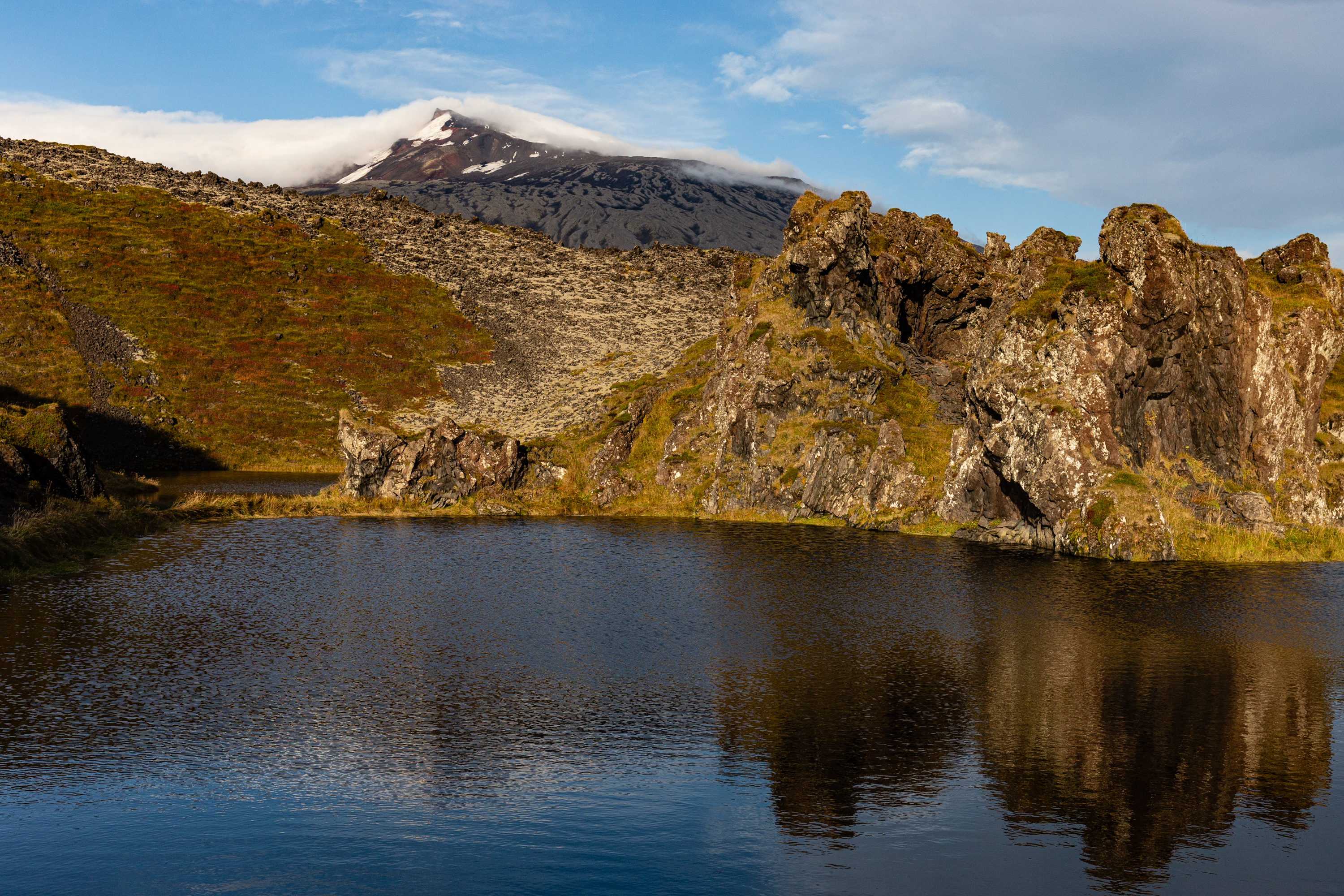 The route around the peninsula is quite short and you can see the Snæfellsnes volcano while driving around it and stopping at the aforementioned landmarks. That if there are no clouds, of course. We got some glimpses of it at some point. The funny thing about the accommodation: we booked a room with “mountain view”. Since the Kirkjufell mountain is the star of the area, we thought that this was the “mountain” from the view. Only to find out that the room had the view in the opposite direction, to other mountains. So, yeah :).