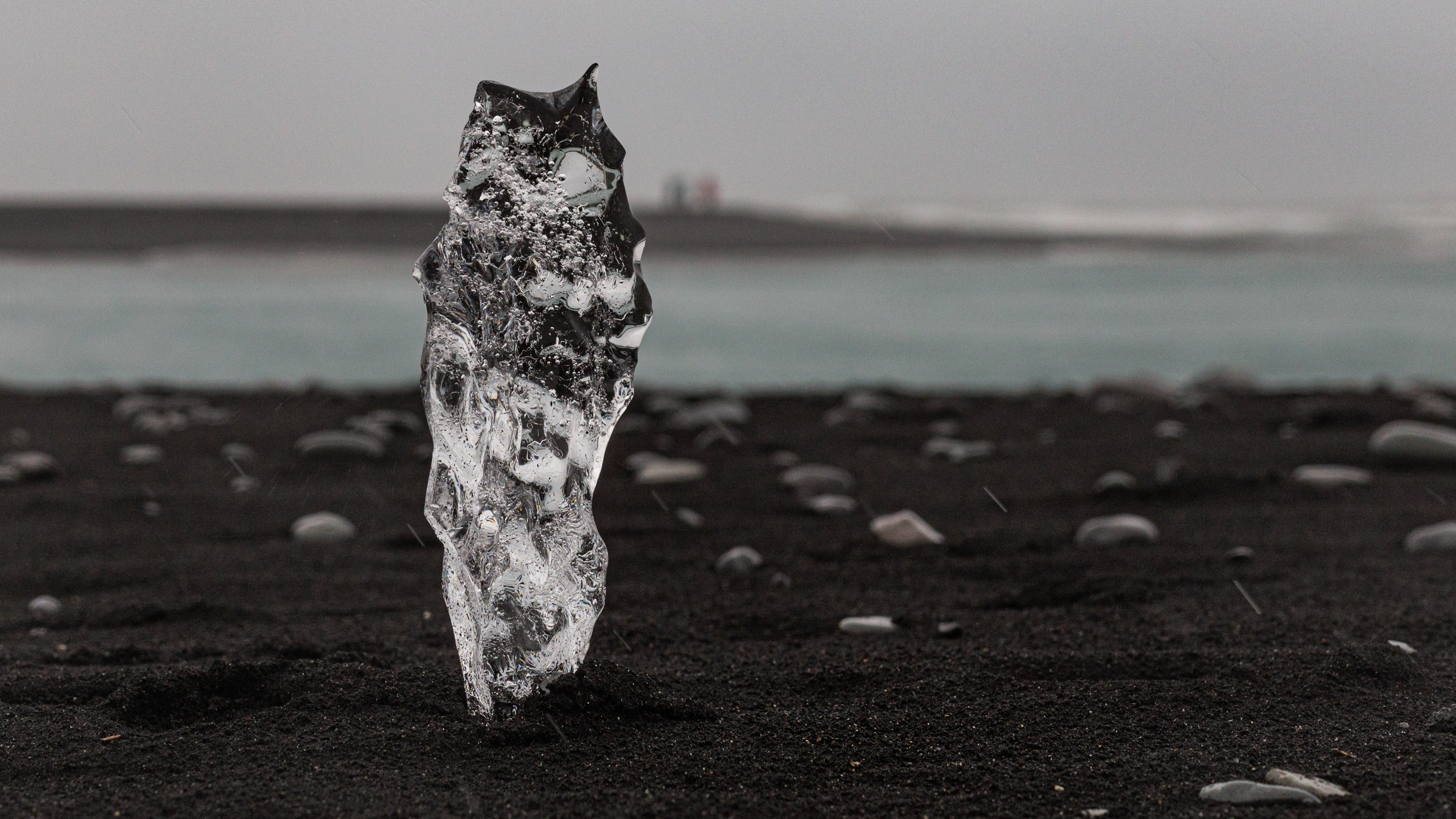 • Diamond beach. That’s the actual name, no elfish or vikingish name. It is very close to Jökulsárlón, actually right across the street. It is a classic Icelandic black beach but littered with diamond clear chunks of ice, of all sizes. Luckily, because of the bad weather perhaps, there were not so many tourists, so we took our time there. I took so much time there that my hand froze on the camera.