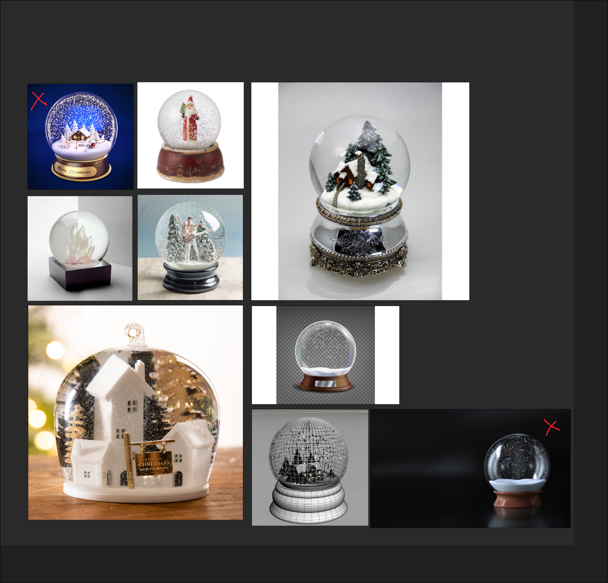 The second step was to build the globe support. On my initial research there was a particular model that was quite simple with a golden label on it. Didn’t save the image, never found it again. But now I selected a few some from a Duck Duck Go search (ok, boomer…) that I really liked, even though they didn’t match the sketch in my head. I used PureRef, as I always do for collecting image references in different projects.